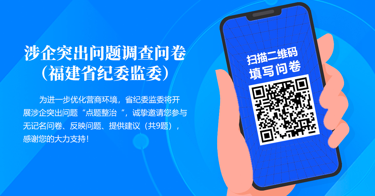 根据驻厅纪检组通知,为进一步优化营商环境,福建省纪委监委将开展涉企突出问题“点题整治“,邀请企业扫码无记名问卷。
